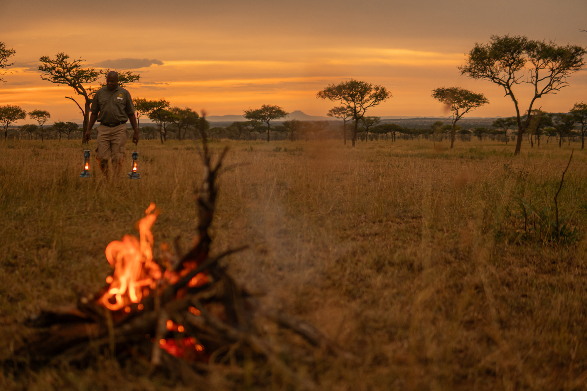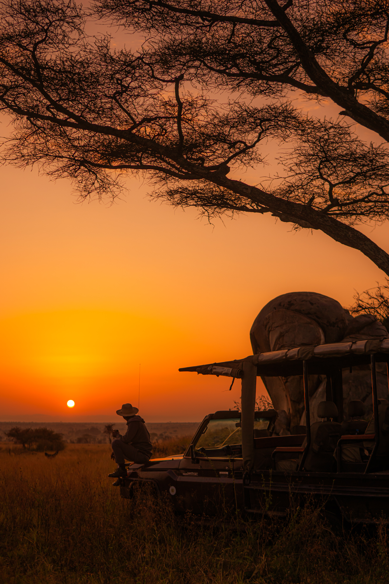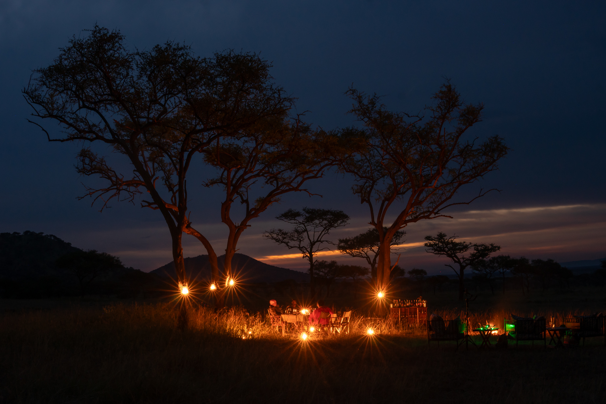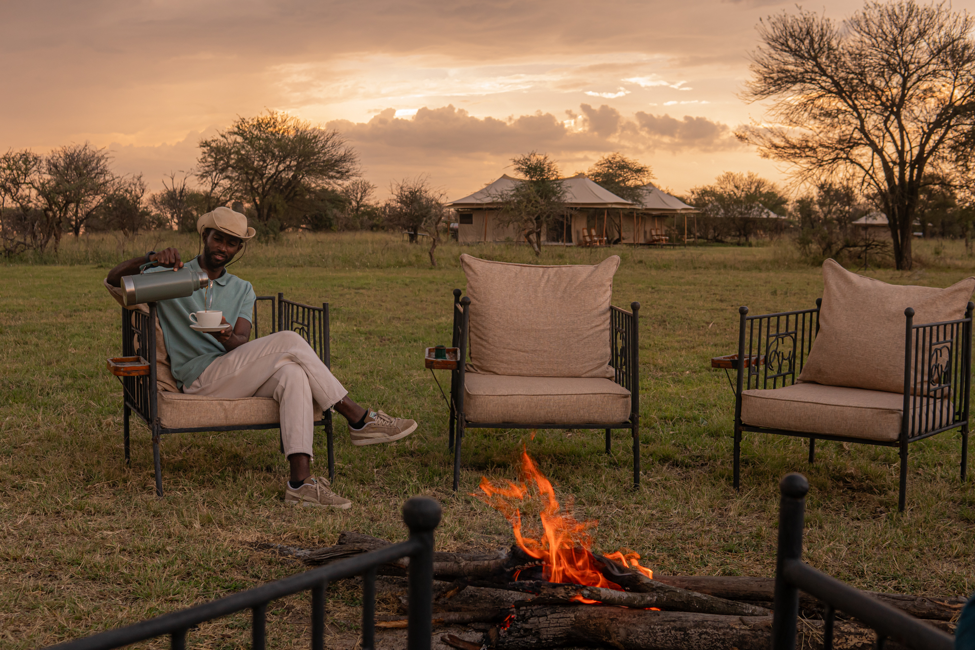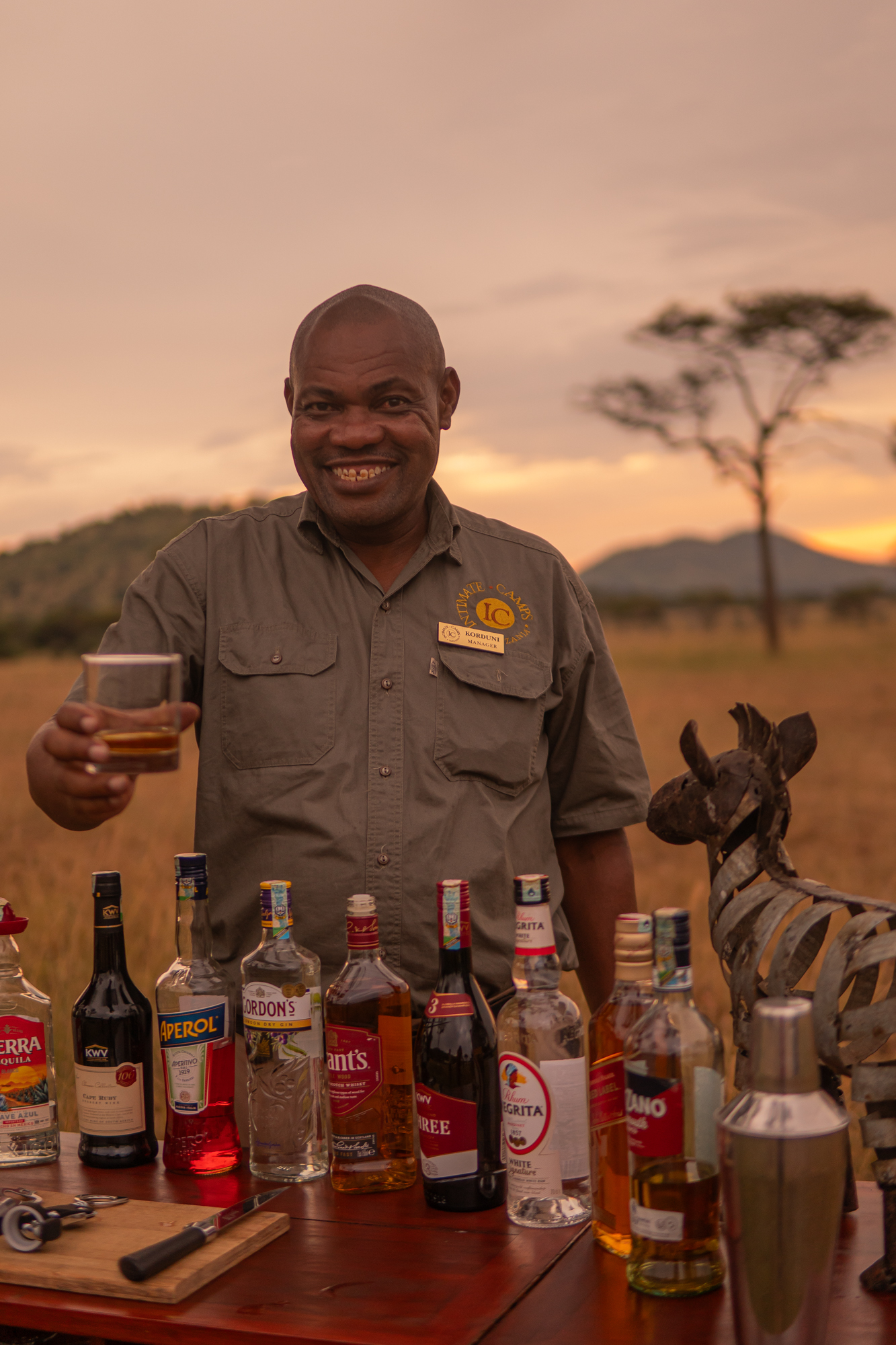 As the day eased into late afternoon, we found ourselves in the perfect spot for a Serengeti sunset. Drinks in hand, we watched the sky transform into a masterpiece of deep orange, crimson, and soft violet, while the distant call of a fish eagle echoed through the valley. It was a moment of pure serenity, the kind that etches itself into memory forever.